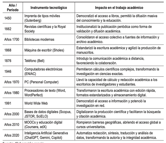 Línea de tiempo de instrumentos tecnológicos que cambiaron el trabajo académico